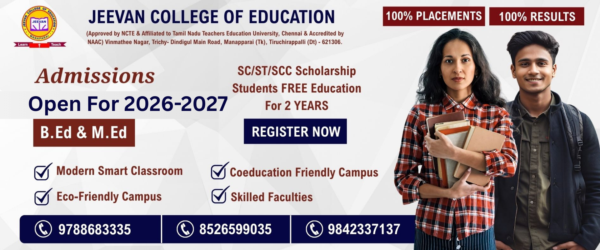Jeevan College of Education was established in 2005 by the Jeevan Educational Charitable Trust, a distinguished and service-oriented trust founded by Kalvi Thanthai Dr. I. Iruthayaraj, M.A., D.Litt, a renowned educationist and visionary. The college was set up with a mission to provide high-quality teacher education and contribute to the development of competent and committed educators.